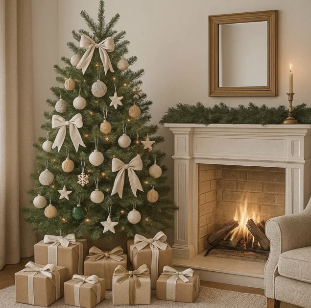 Designerii spun că în 2025 se poartă bradul aerisit, cu decorațiuni bine alese, nu încărcate. Un număr redus de globuri mari, combinate cu câteva elemente statement, poate transforma instant orice brad într-o piesă de design.