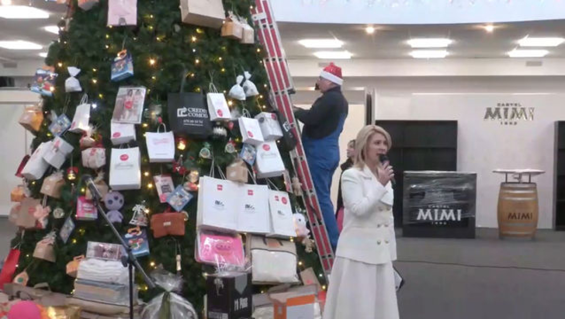 „Aici suntem lângă bradul Mândria Moldovei, o acțiune pentru cei care au mai multă nevoie decât noi. Este vorba de un brad care este împodobit cu produse ale antreprenorilor noștri, care vor merge la niște centre de plasament”, spune Zinaida Popa, director, Centrul Expozițional.